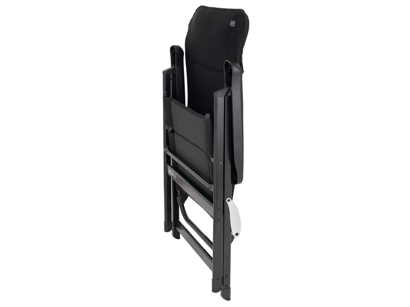 Comfortabele campingstoel voorzien van het ademende 3D mesh materiaal. Het nieuwe aluminium ovale frame zorgt ervoor dat de stoel eenvoudig en zeer plat is in te klappen. De stof is van een ademend 3D-mesh met waterdoorlatend polyesterschuim. Sneldrogend, comfortabel en gemakkelijk in onderhoud. De stoel heeft een stevig aluminium scharnier en daarom een max. draagvermogen van 140 kg. Rugleuning is 7 x verstelbaar. Voetensteun optioneel leverbaar.