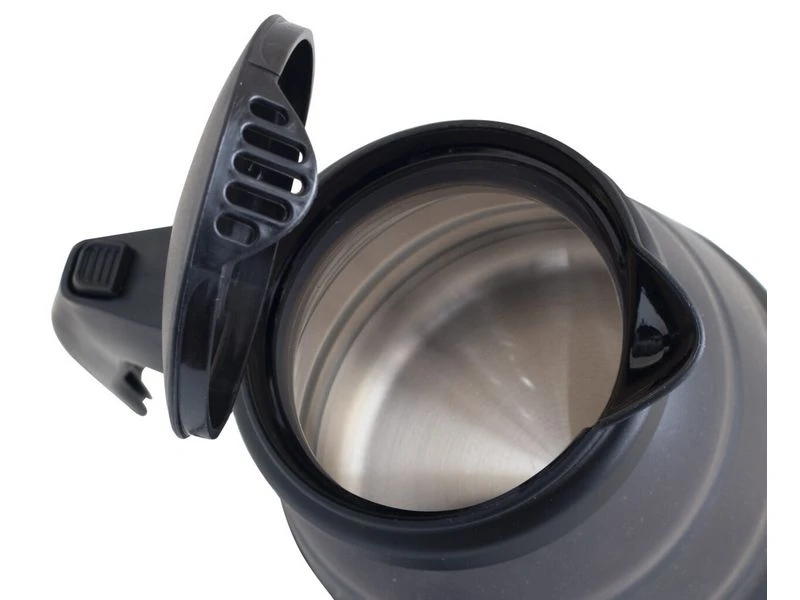 Opvouwbare waterketel gemaakt van siliconen materiaal, praktisch en ruimte besparend. De waterkoker is vervaardigd van siliconen materiaal met een PP bodem en een SUS304 RVS verwarmingselement. Deksel kan automatisch geopend worden. De waterkoker is eenvoudig samen te vouwen en neemt daardoor weinig ruimte in, ideaal voor gebruik op de camping in de caravan of tent.