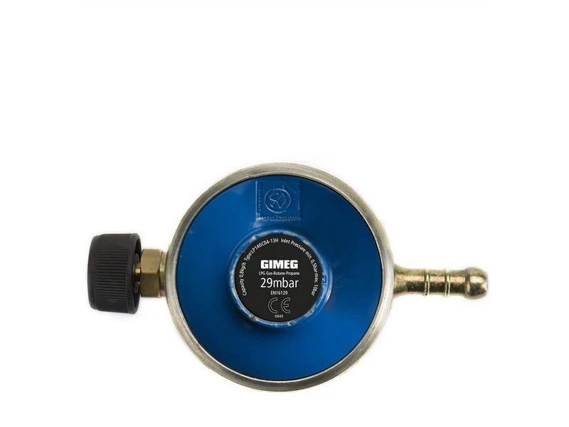 Met deze gasdrukregelaar van 29 millibar sluit u uw gasfles met het grootste gemak aan op uw installatie. Wilt u binnen gas gebruiken? Bijvoorbeeld in uw camper, caravan of boot? Dan heeft u een gasdrukregelaar met afblaasbeveiliging nodig. Ook deze vindt u in het assortiment van Gimeg.
