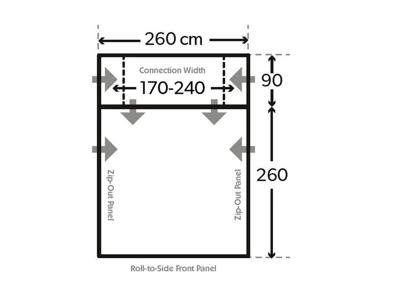 Drive-awaysets bieden een veilige manier om uw voortent aan uw camper te bevestigen. Verbind simpelweg de 8-vormige strip van de pees langs de ene rand voordat u de voorgenaaide voortentpees langs de andere bevestigt. Schuif de 8-vormige strip weg en laat de voortent vrijstaan op uw kampeerplek.
